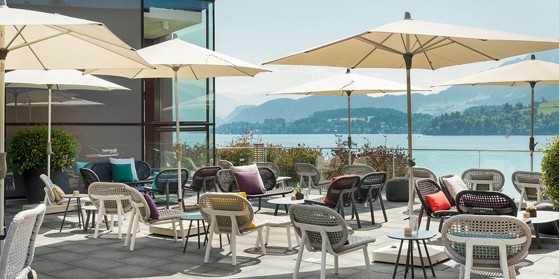 Die Komodo Gartenlounge auf der Terrasse der Mittelstation Stockhornbahn in Erlenbach i. S.