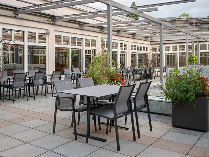 EMS Val Fleuri in Genf setzt auf nachhaltiges Gartenmobiliar von Hunn.