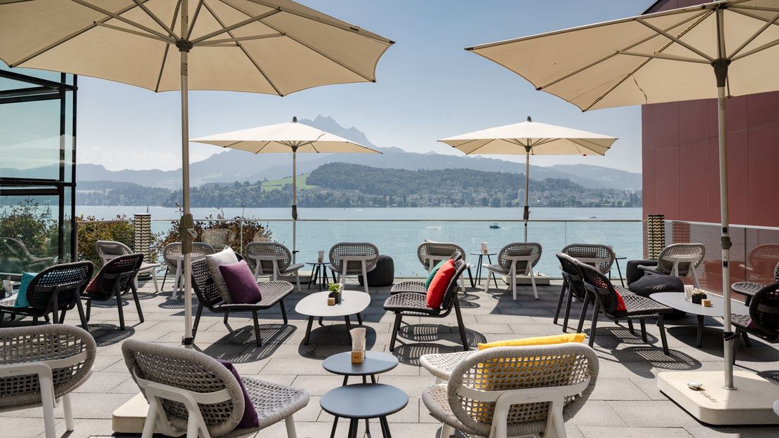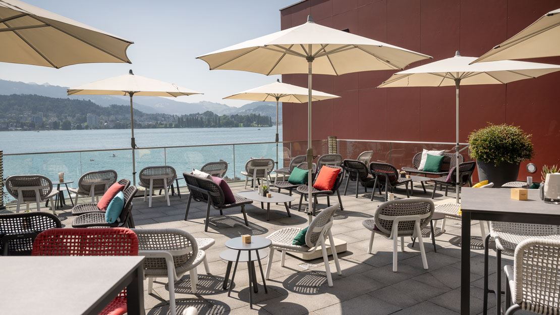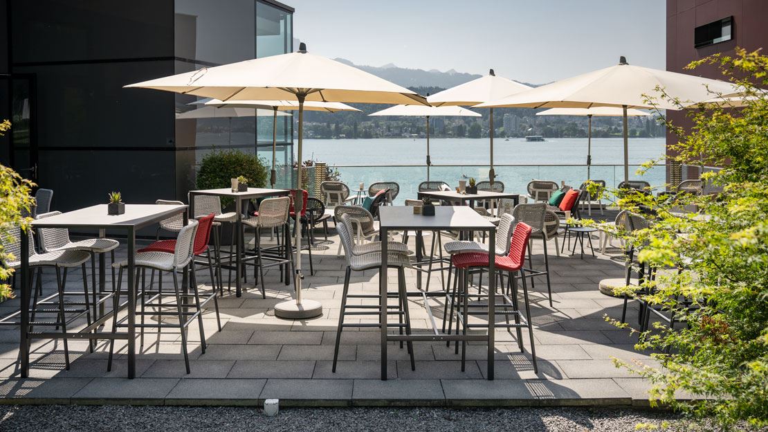 Direkt am Ufer des Vierwaldstättersees verbindet die Hermitage Lake Lucerne AG exklusives Ambiente mit entspannter Leichtigkeit. Die grosszügigen Aussenbereiche laden dazu ein, den Blick über das Wasser schweifen zu lassen und besondere Genussmomente zu erleben. Mit eleganten PALMA Barstühlen, den markanten SCHILTHORN Bartischen sowie der komfortablen SAN DIEGO Lounge entsteht eine stilvolle Atmosphäre zwischen Design und Gemütlichkeit. Ergänzt durch diverse Zierkissen und Outdoor-Poufs wird der Aussenbereich zu einer einladenden Wohlfühloase. Hochwertige Materialien und zeitloses Design unterstreichen das exklusive Ambiente. Perfekt für entspannte Stunden am See, vom Apéro bis in den Abend hinein.