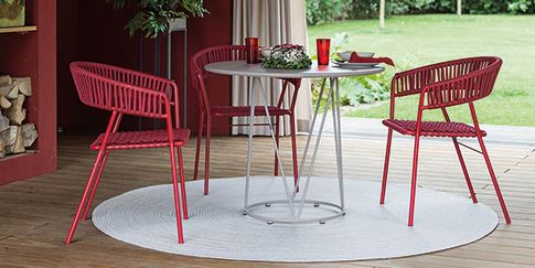 Rope und Textilene: Moderne Outdoor-Materialien, die hohen Sitzkomfort mit einer zeitgemässen Optik verbinden.