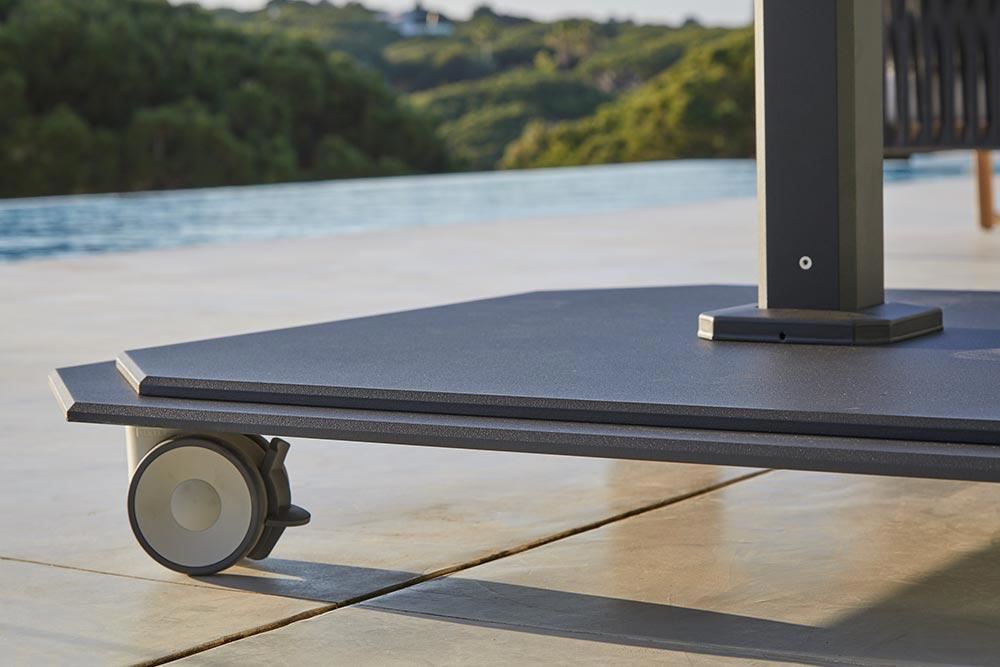 Der passende Sonnenschirmständer sorgt für sicheren Halt. Von mobilen Varianten mit Rollen bis zu schweren Granitständern. Die stabile Basis ist entscheidend für maximale Sicherheit.